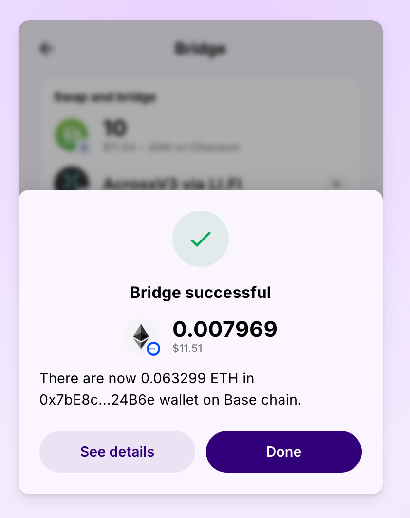 In this case you can see that this option will swap sDAI for WETH through Li.Fi’s DEX Aggregator, then make use of the Across bridge V3 to bridge that WETH into ETH on Base.