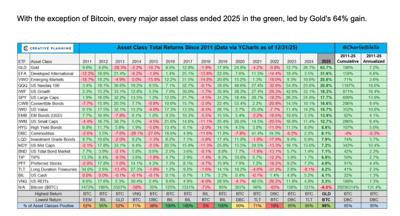 As we’ve seen so far there’s no doubt that Gold and its precious metal friends have had a stellar year in 2025, while Bitcoin and Crypto actually dropped this past year. Gold bugs like Peter Schiff have been very vocal about all this and mocked Bitcoin given its poor returns recently.