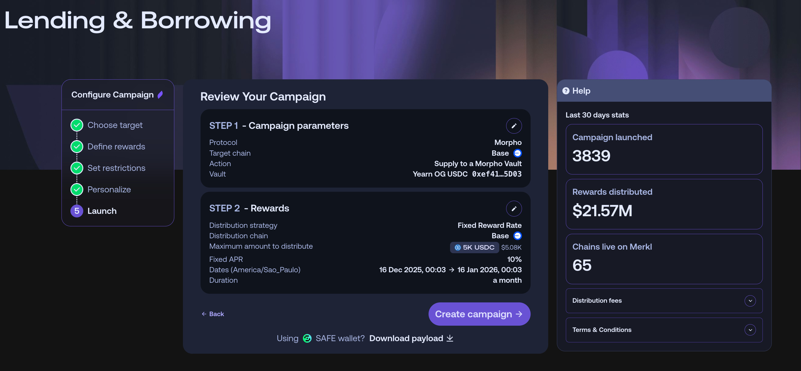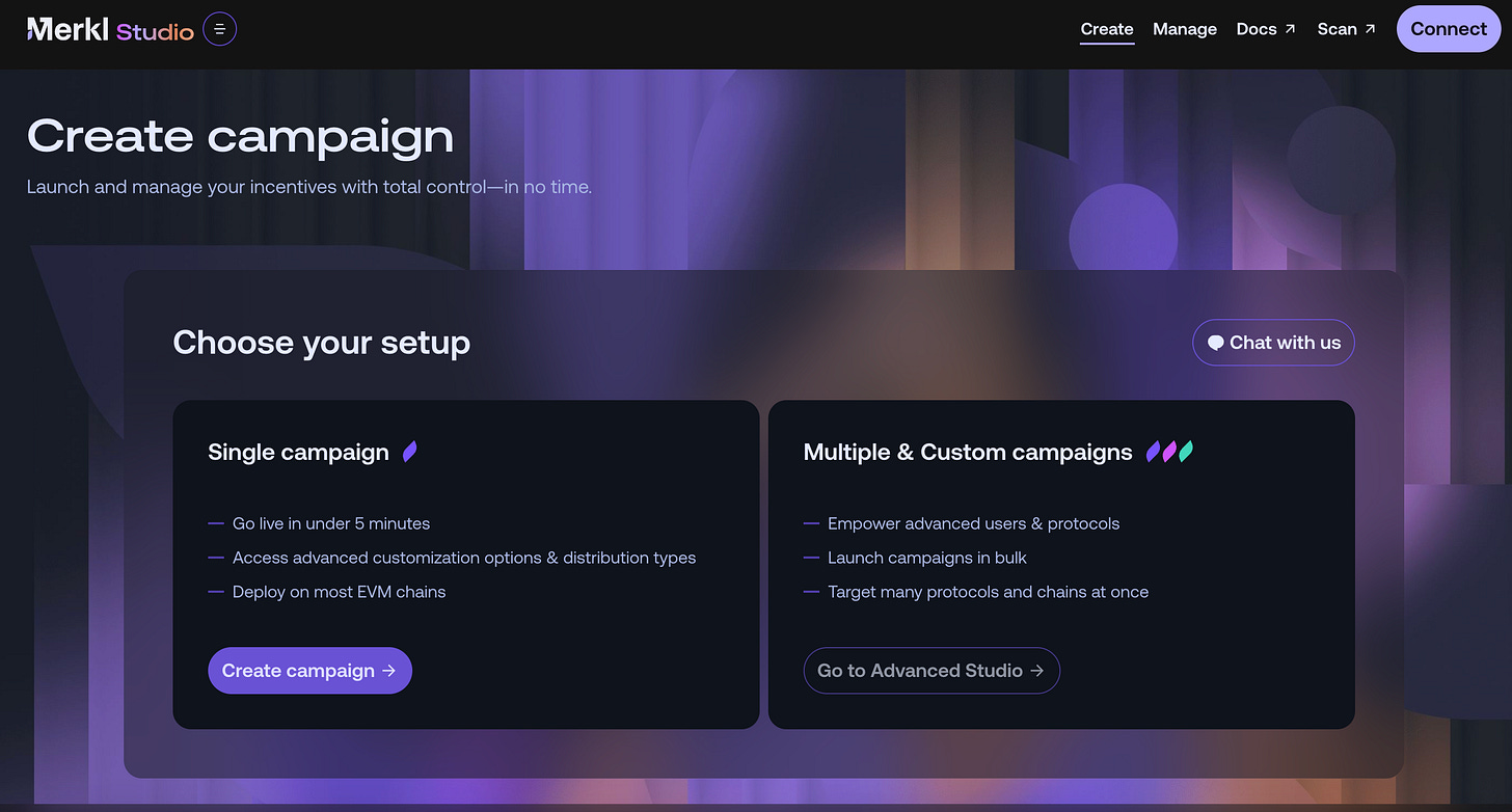 Their Merkl Studio UI makes it relatively easy for projects to create a standard set of campaigns, however more complex campaigns require reaching out to the team.