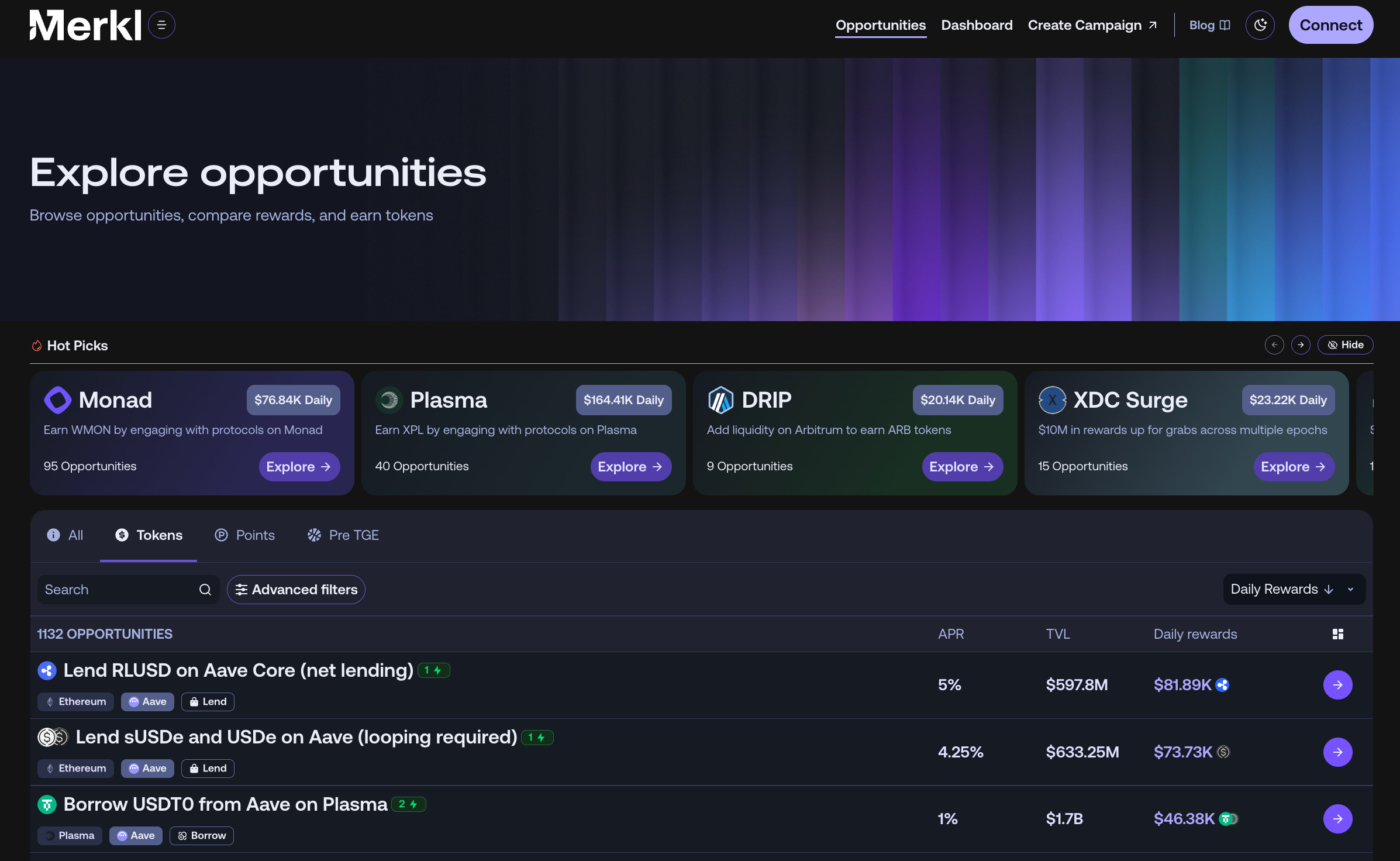As a user on Merkl its very easy to find new opportunities with the range of incentive programs available.