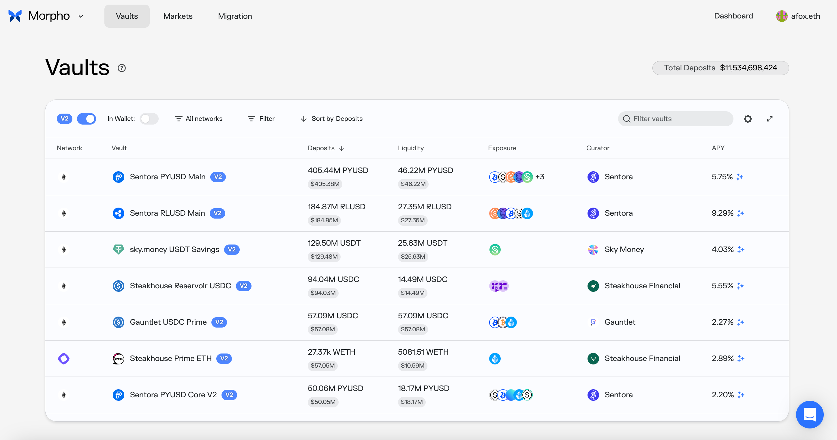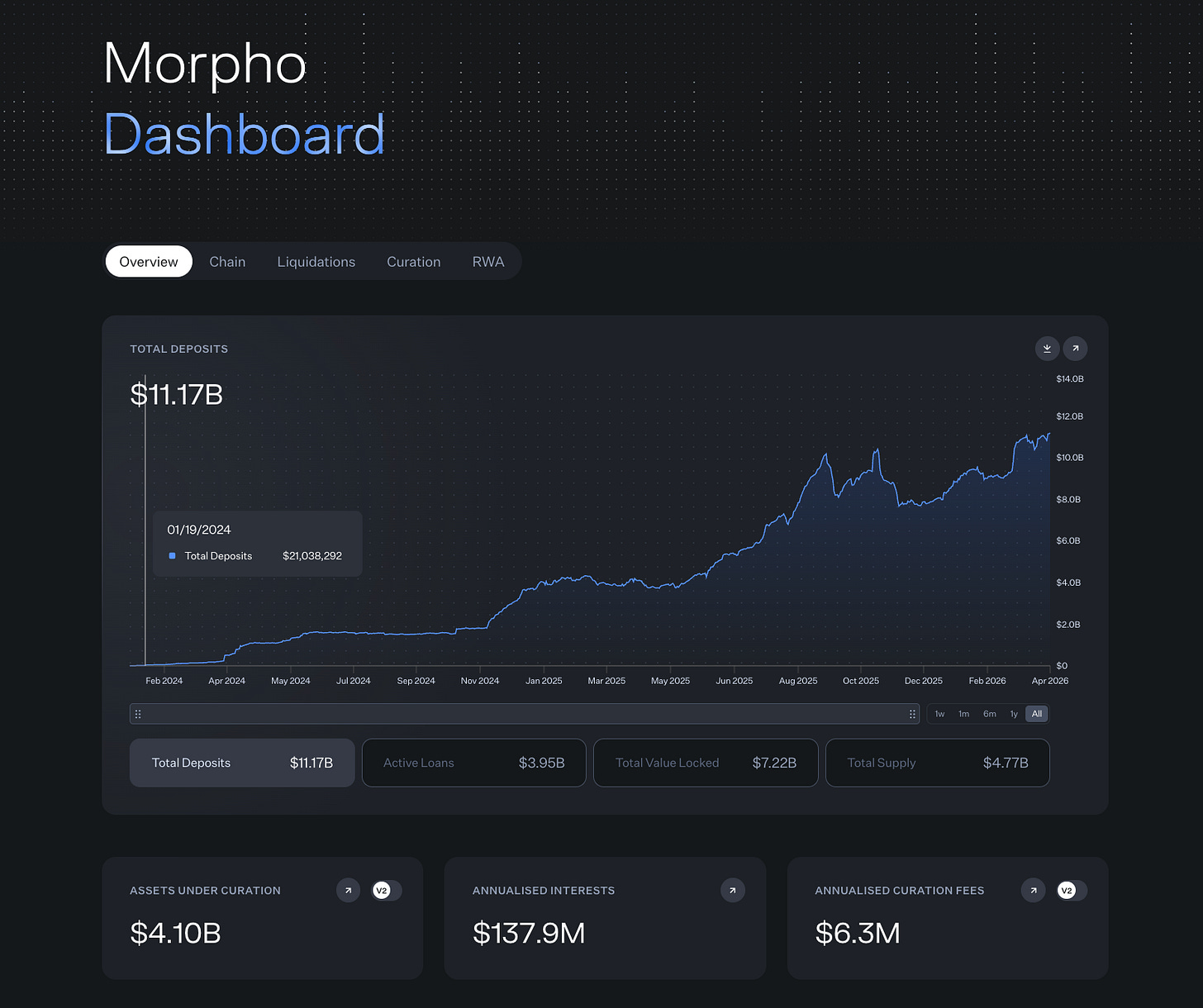 Morpho is a DeFi lending protocol with $11bn in deposits built in two layers: “Markets” where borrowing happens and “Vaults” where lenders earn yield.