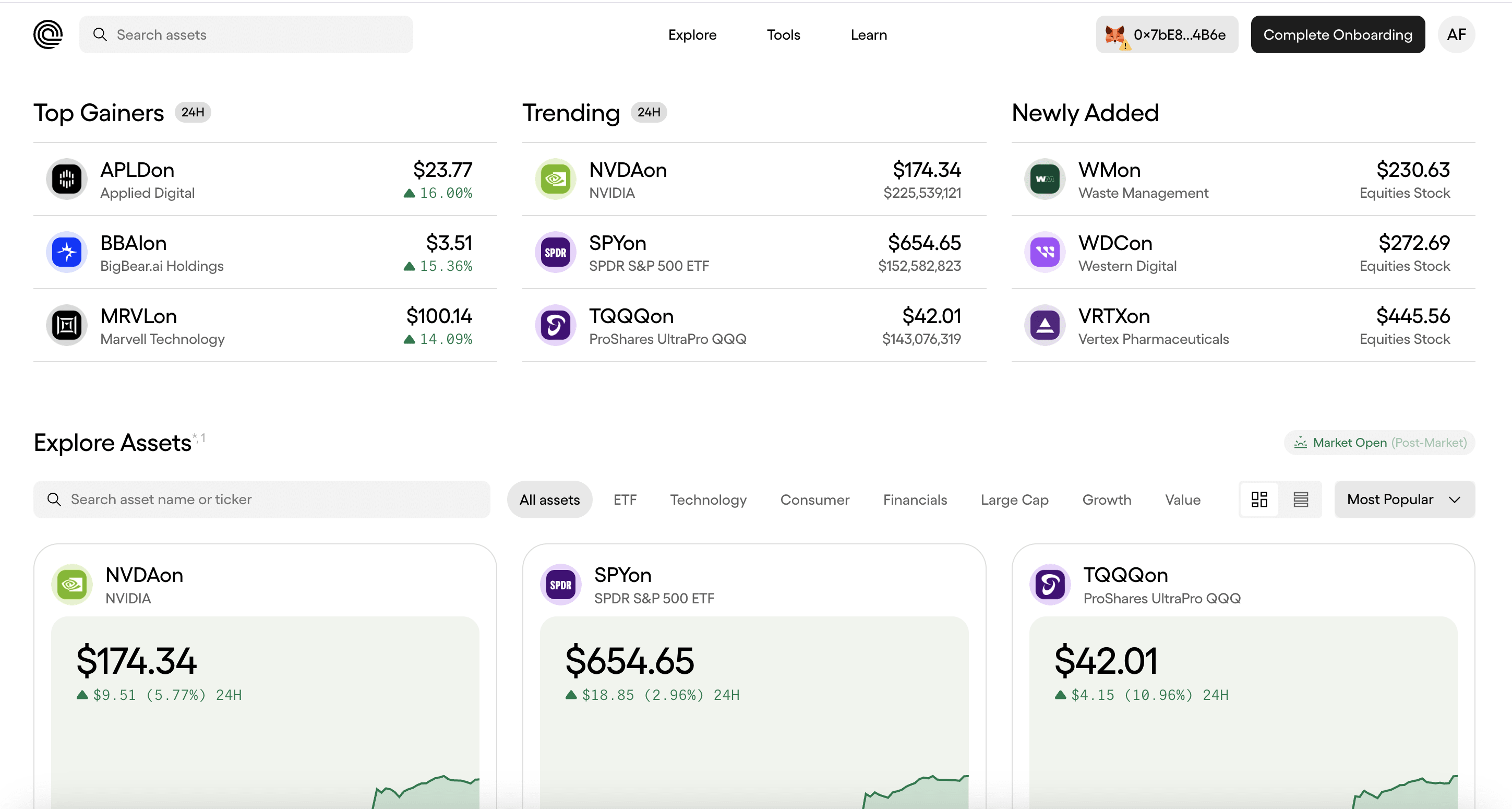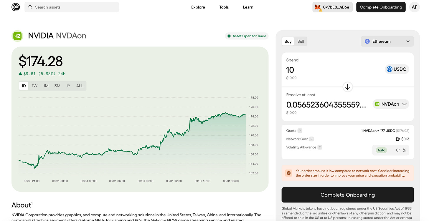 Ondo’s onchain stocks product can be accessed at ondo.finance/global-markets.