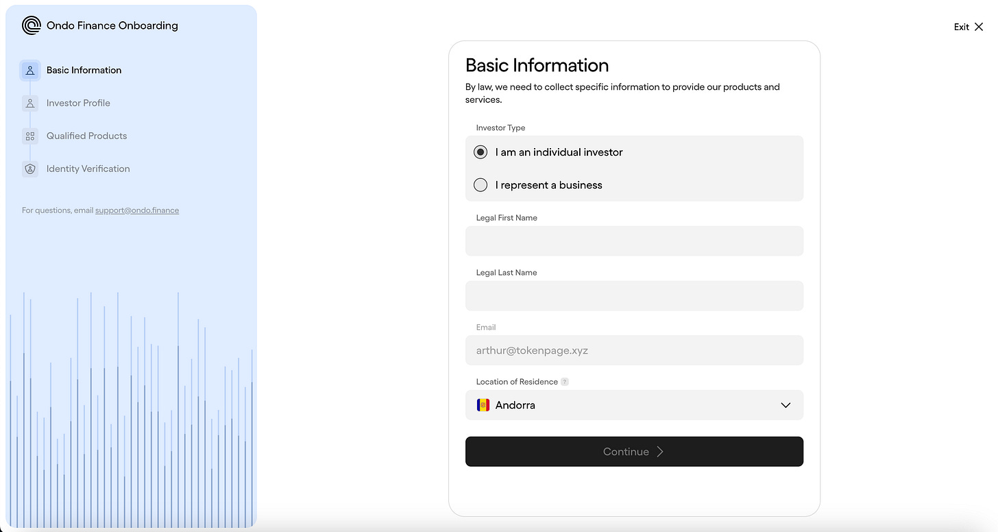 Speaking of anonymity, to use Ondo you do need to share information about yourself as you go through their onboarding process.