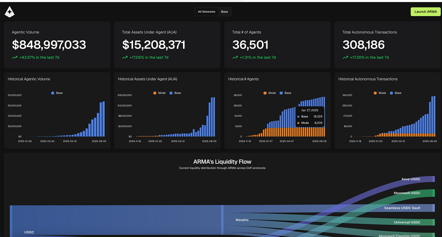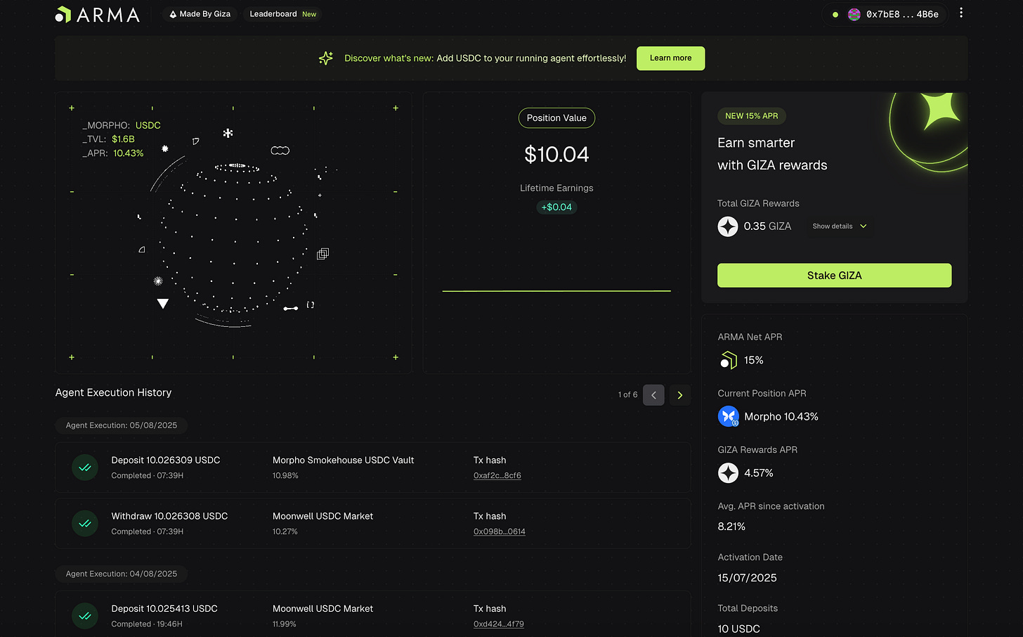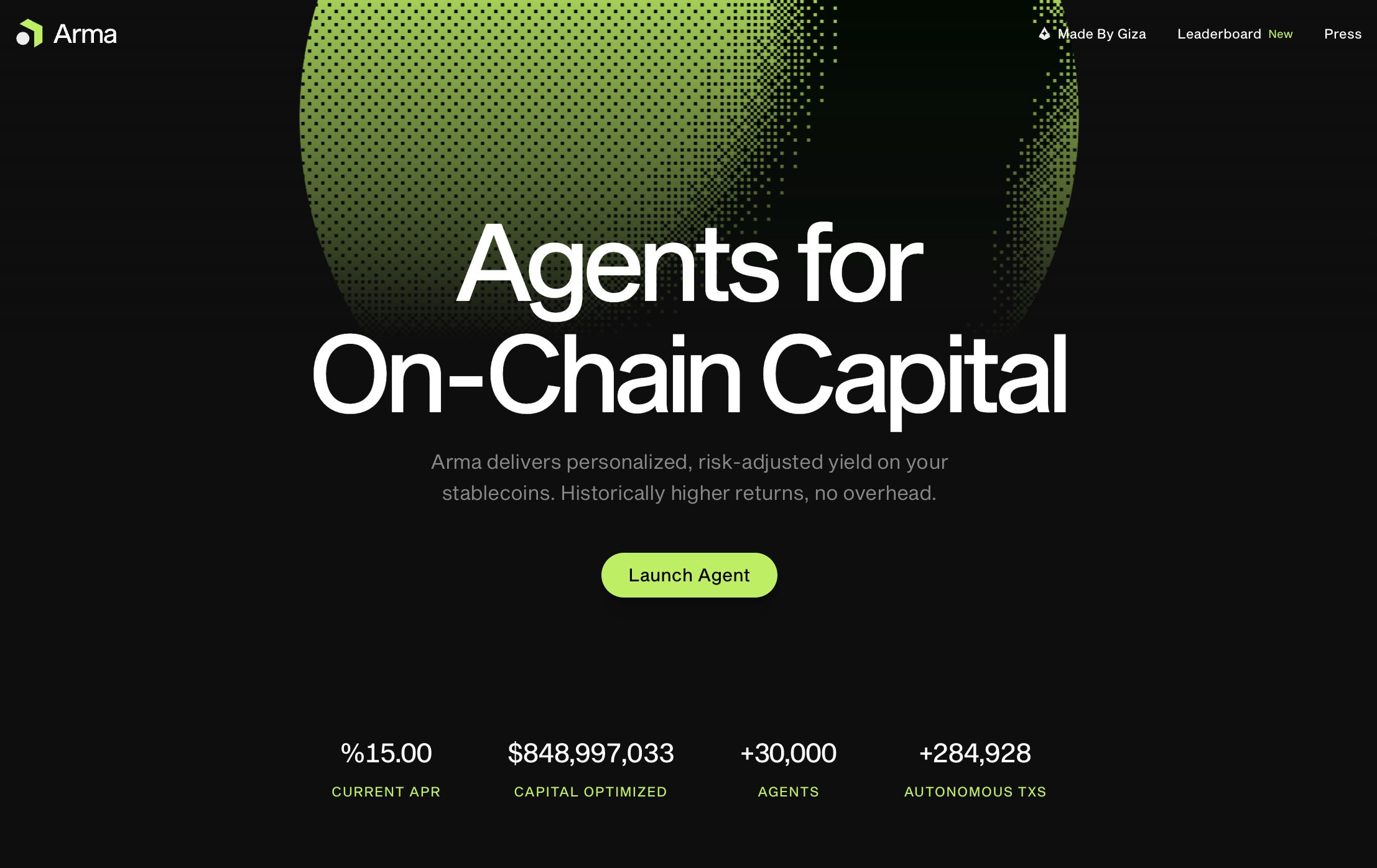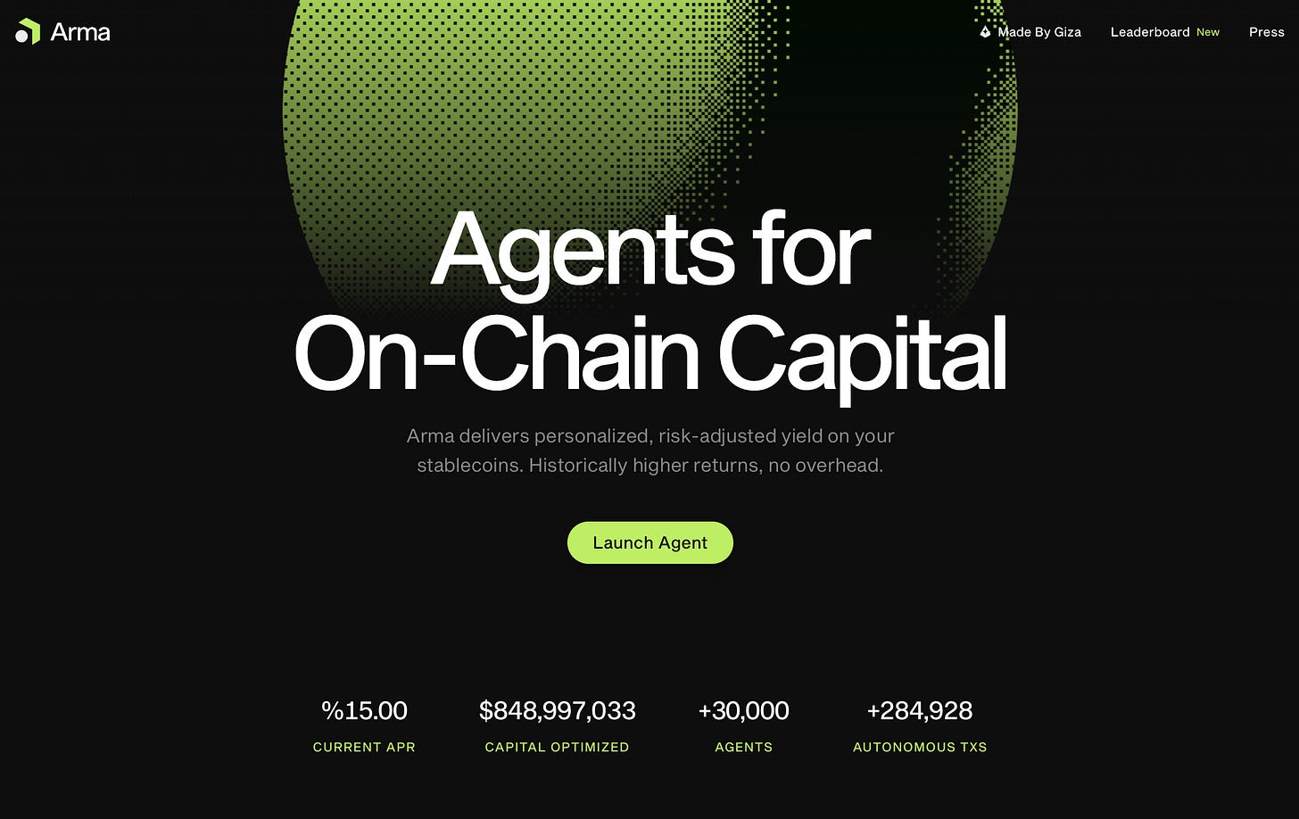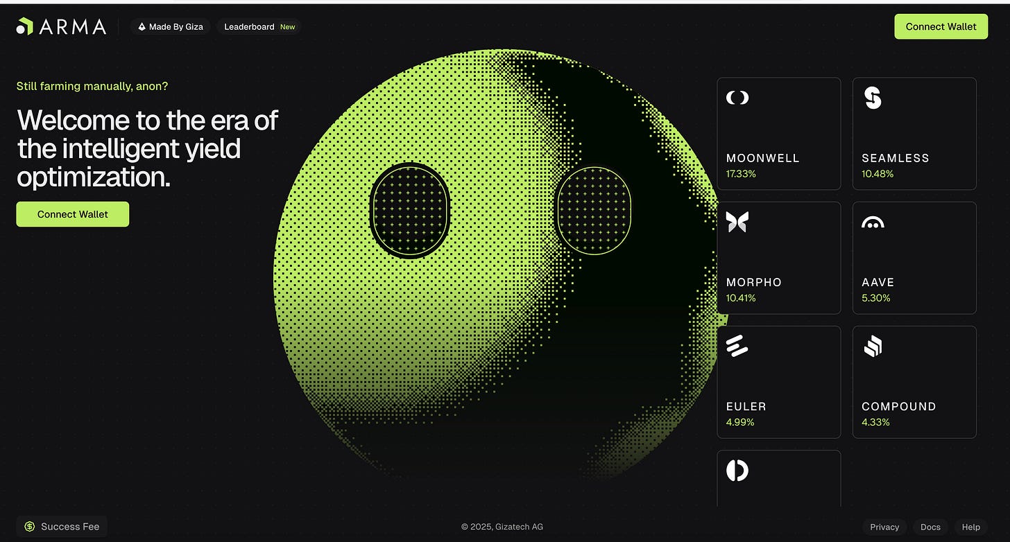 Arma is our third similar agent platform that also takes your USDC on Base and earns you yield on autopilot. They are Giza’s “flagship stablecoin yield agent”, which suggests that Giza will be building more agents over time.