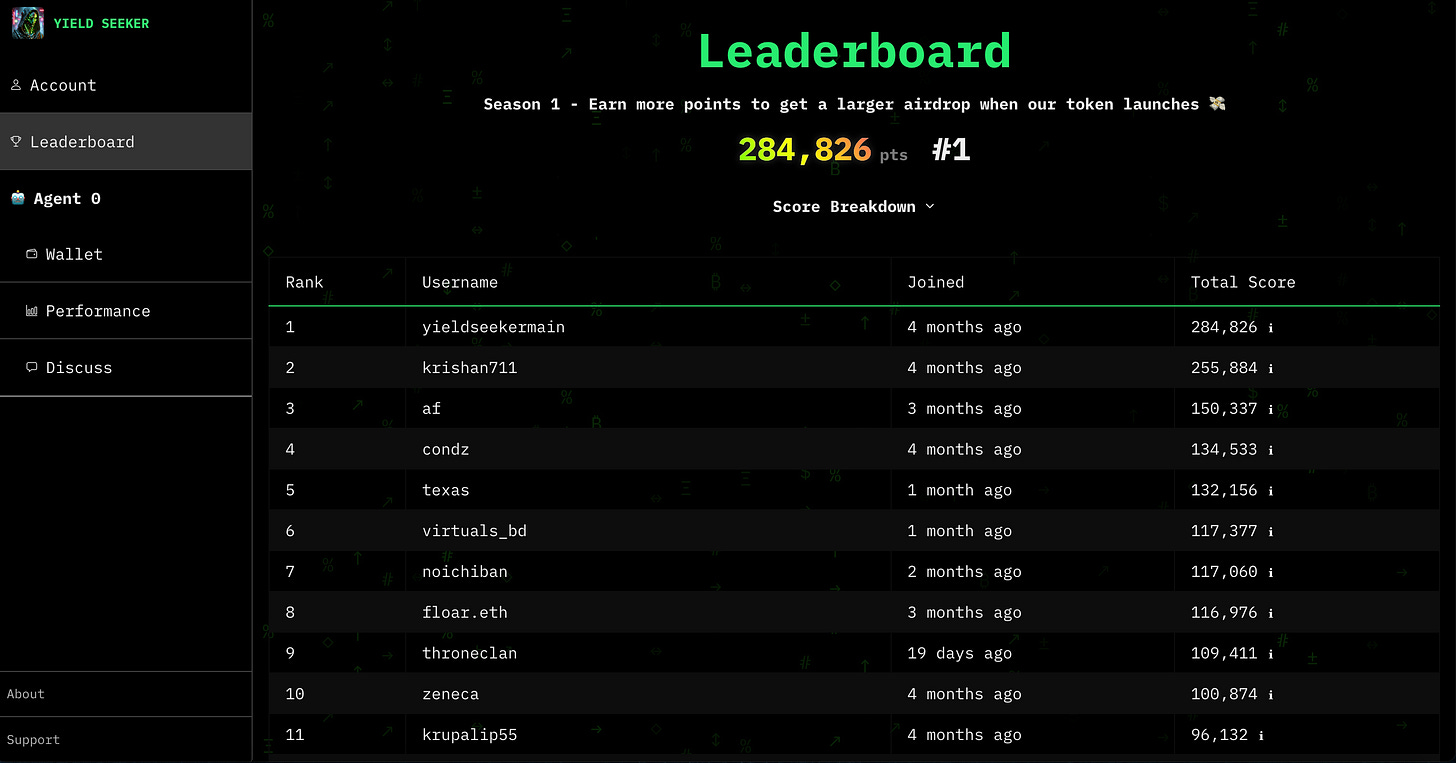 For example rising up on the Yield Seeker leaderboard can potentially earn you a great airdrop - although its important to note that no date has been set for TGE as we’re entirely focused on creating a great product and getting a lot of people onboarded.