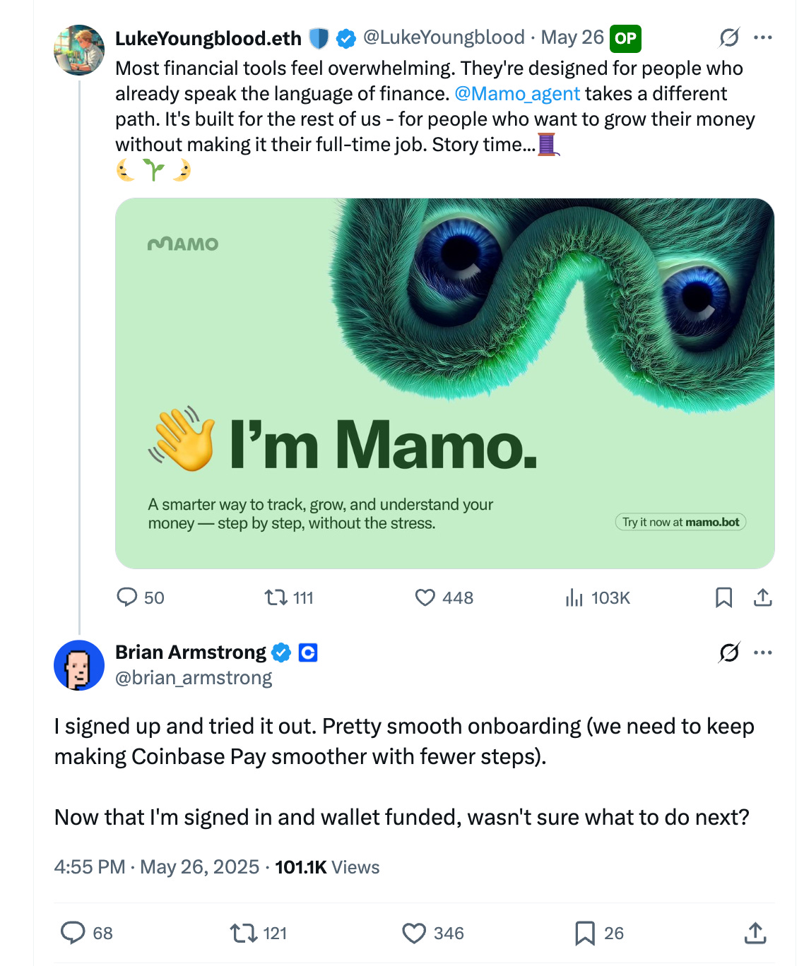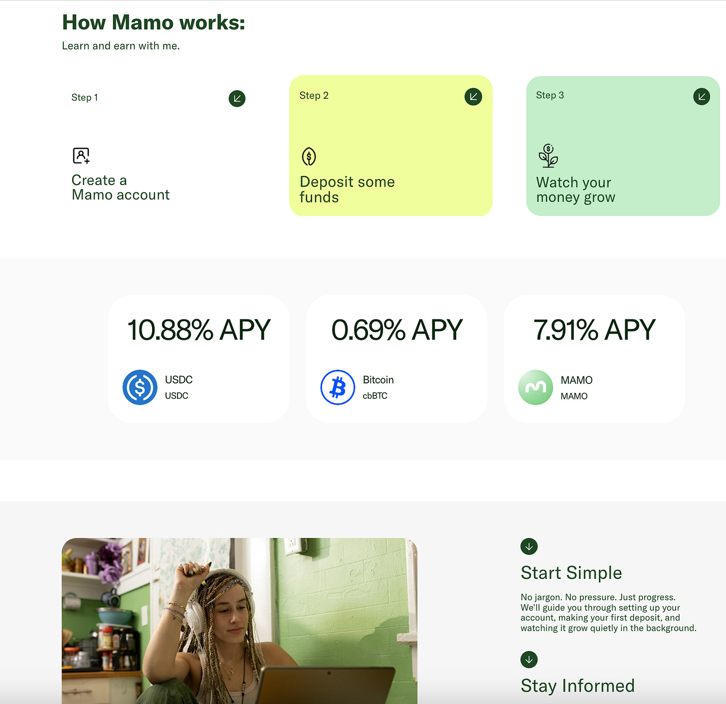 Mamo provides its users with a similar agent that grows your money on autopilot, in their own words their agent promises to “help you track, grow, and understand your money”. They have a cutesy branding and look to be aimed at non crypto-natives with their fluffy looking agent.