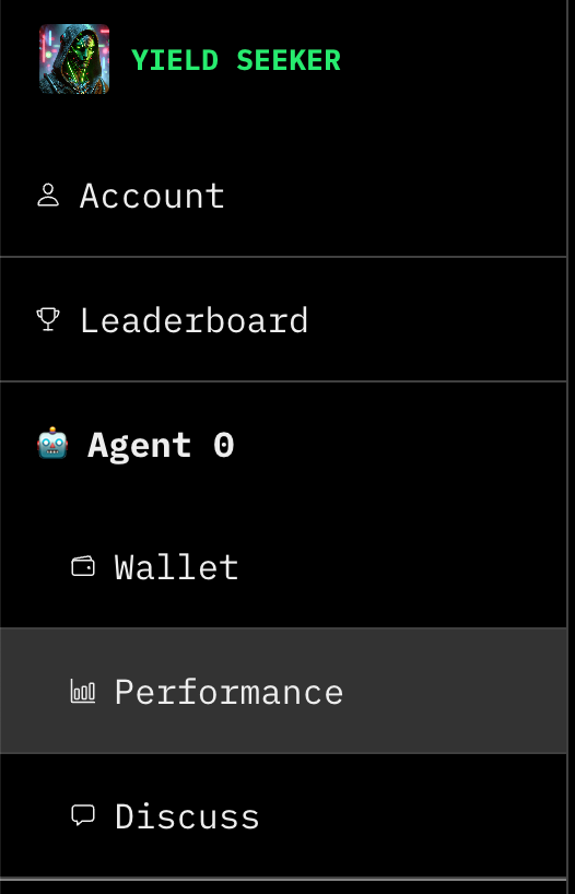 Yield Seeker has 5 main tabs and going through each covers most of the functionality, they are: Account, Leaderboard, Wallet, Performance, and Discuss.