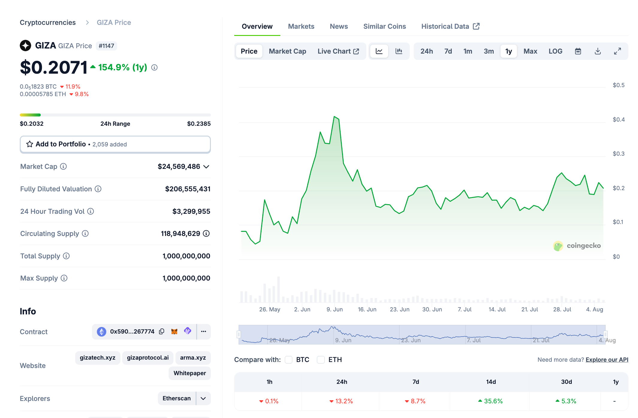 Giza released their token earlier this year in May on the same week as Mamo, and its also been doing really well, as they are currently sitting at an FDV of around $205m according to Coingecko.