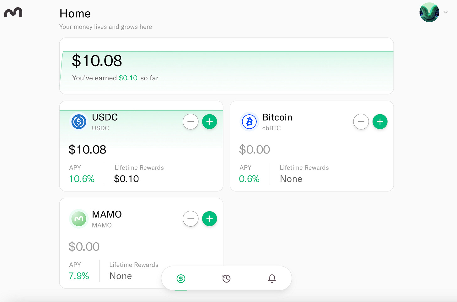 Immediately after you’re given a dashboard with all the different assets you can leave with your agent and the APY you’ll get on them. They currently support USDC, cbBTC and their own MAMO token.