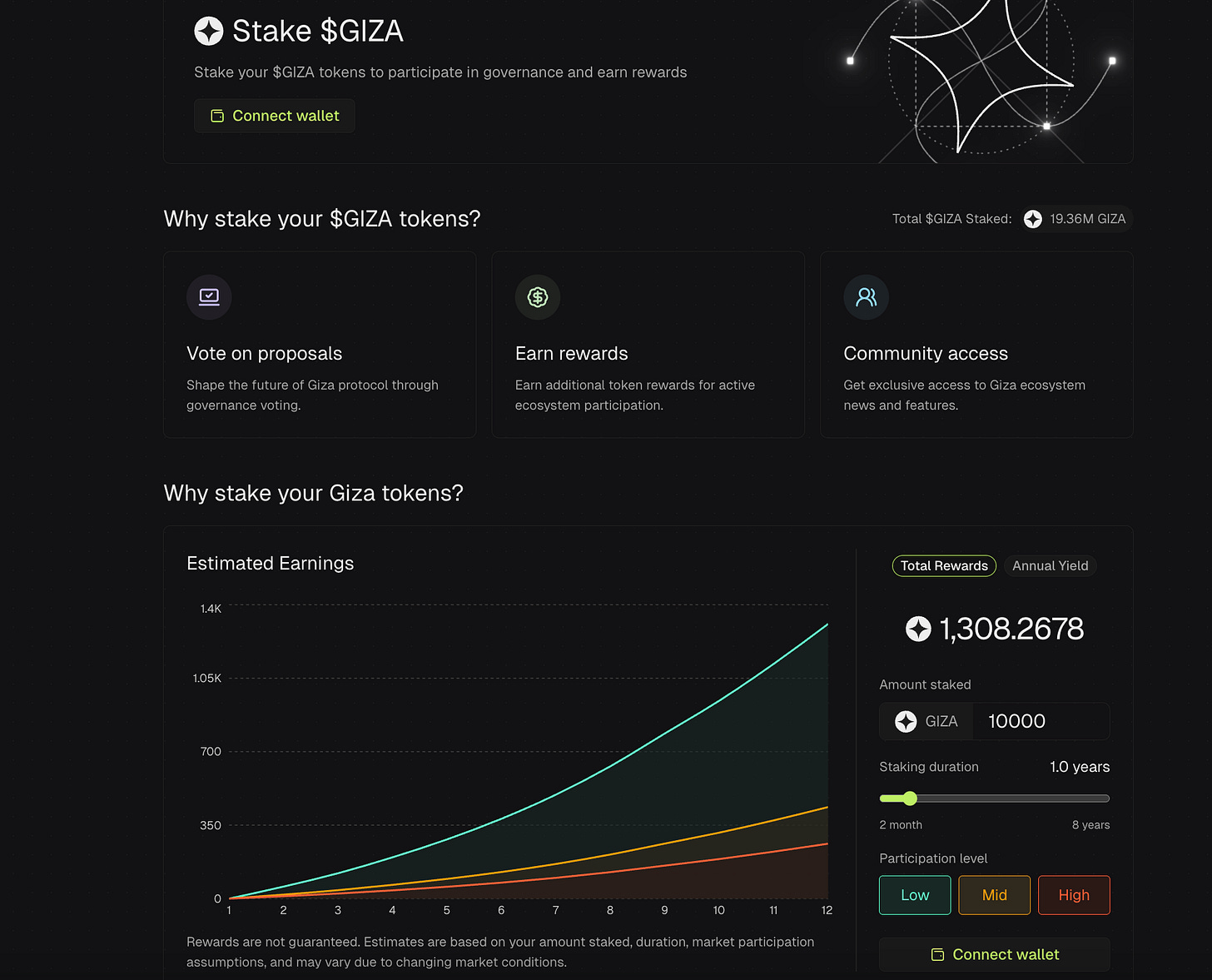 They also try to incentivise users to hold onto these GIZA tokens by only giving the reward once per week and having a way for the tokens to be staked so users can earn more rewards and be able to vote on proposals.
