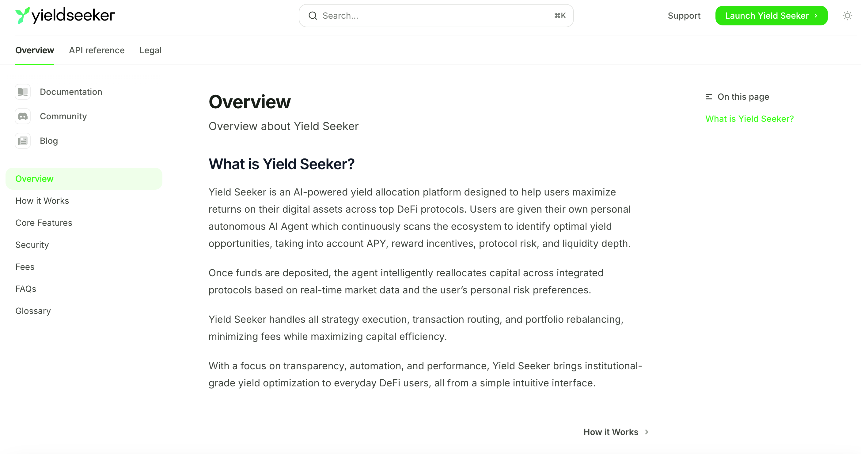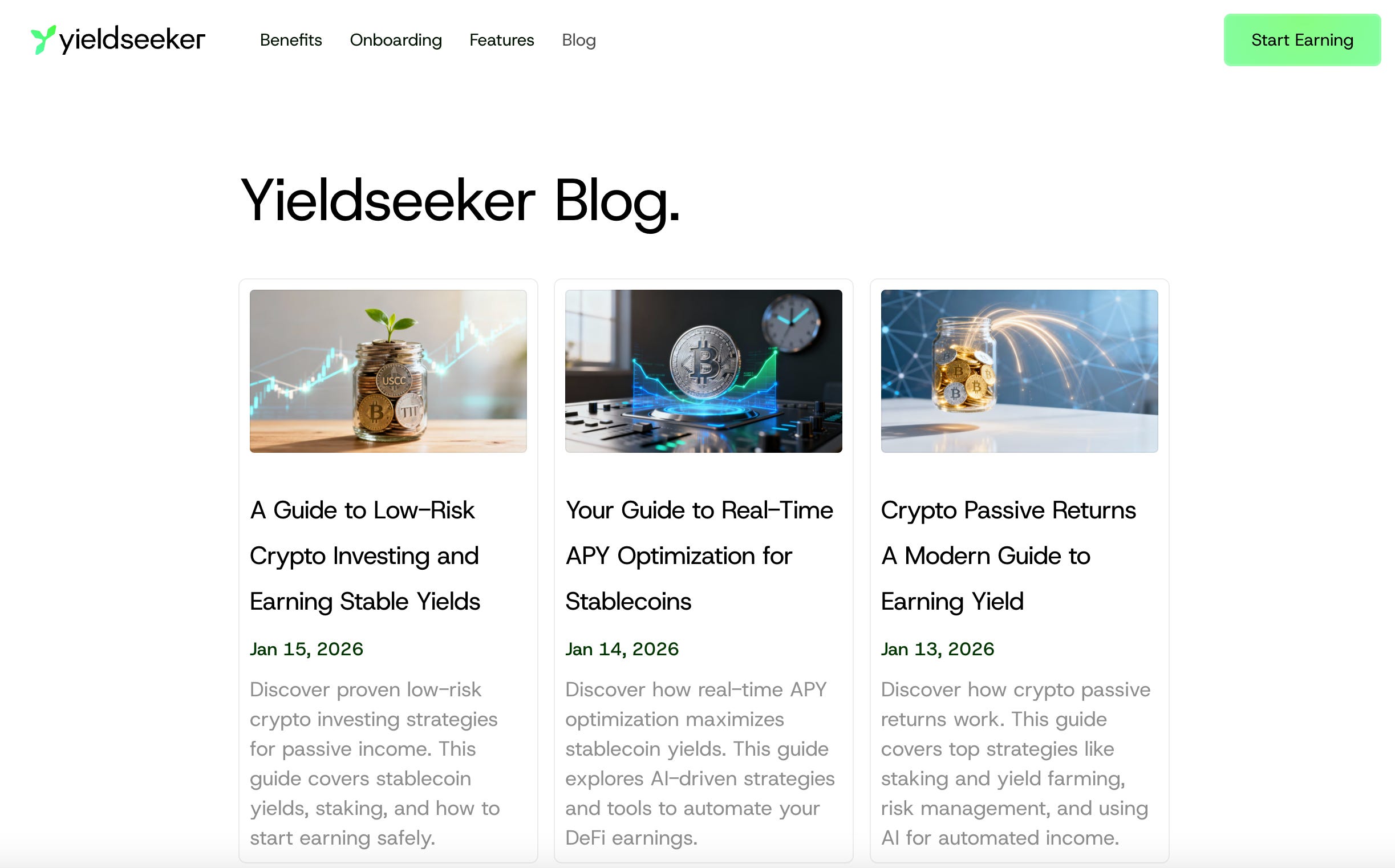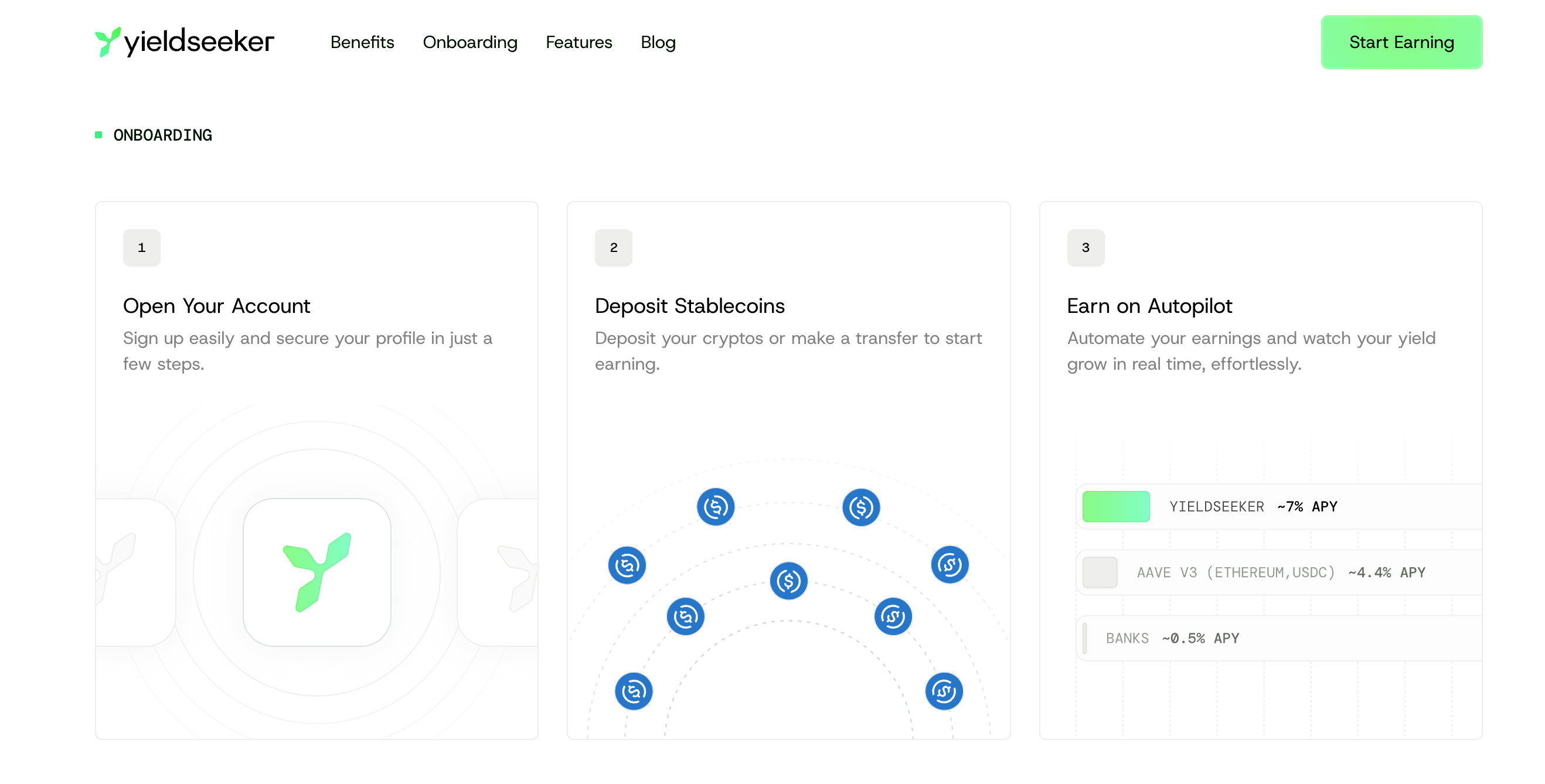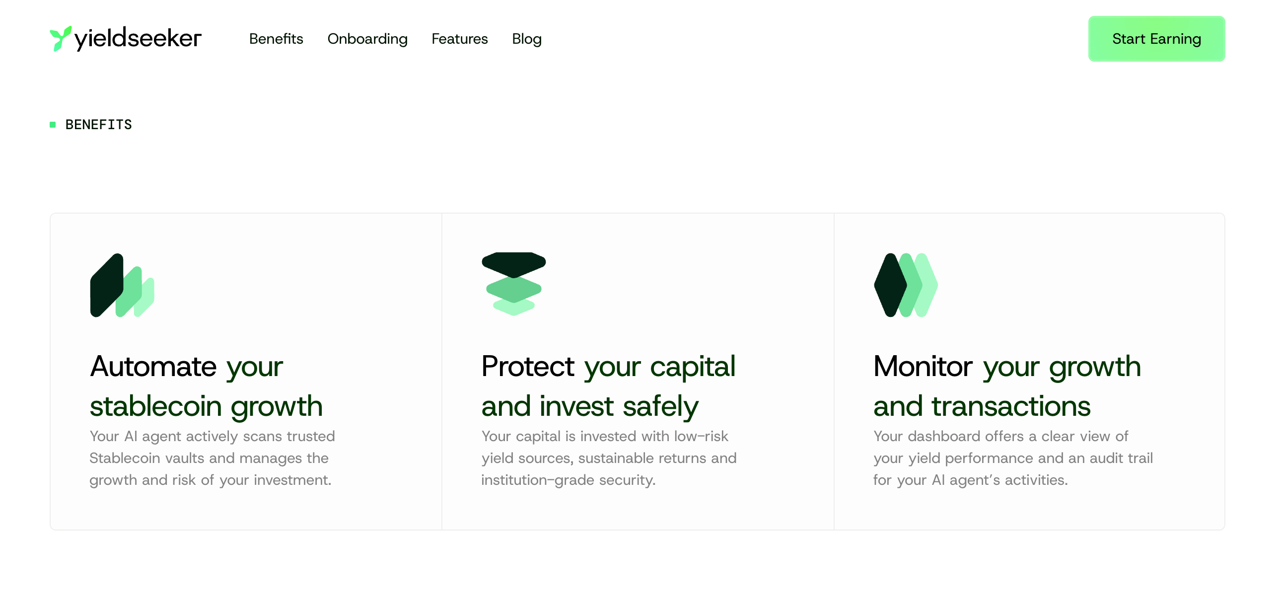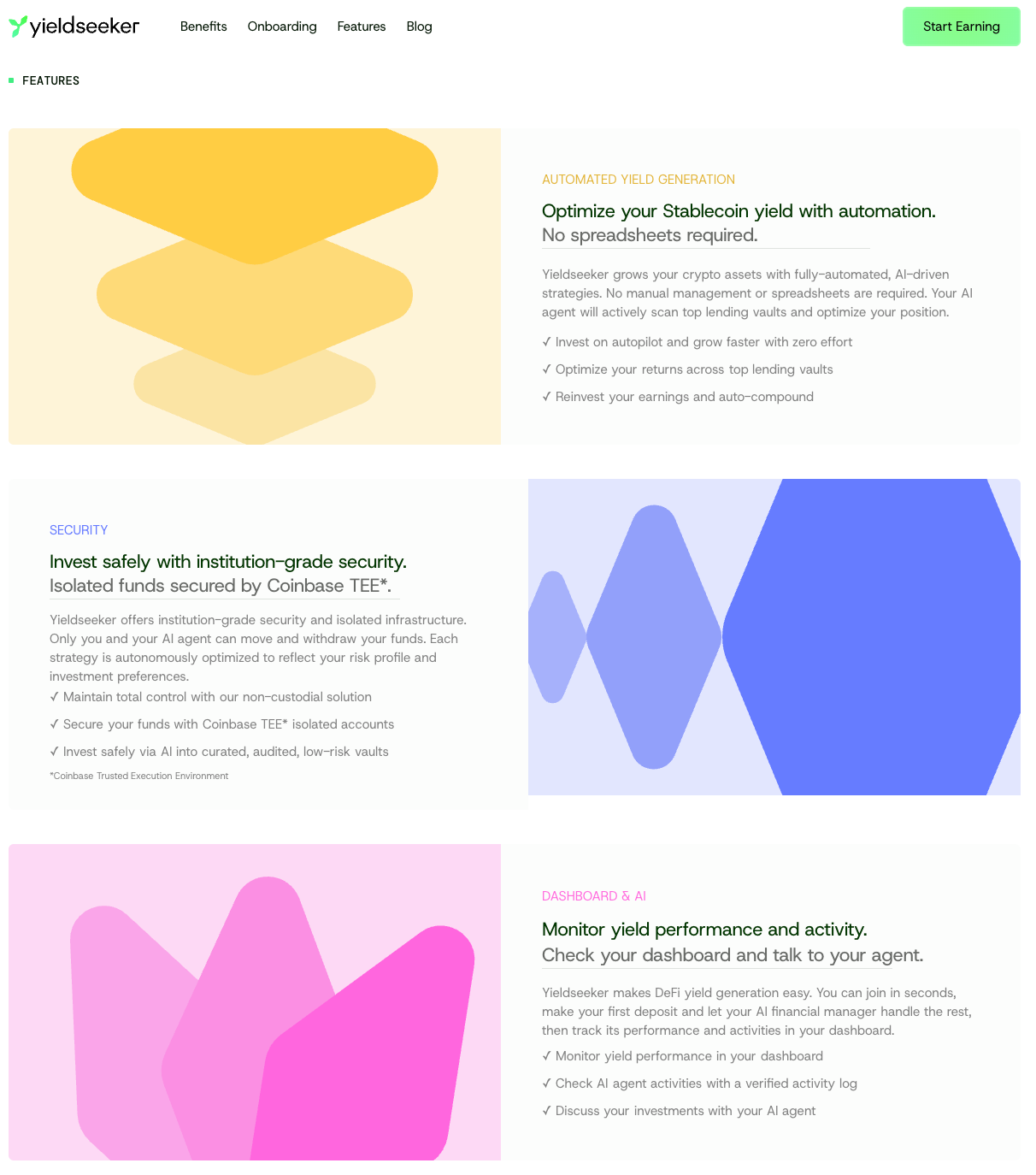 Below it you’ll find the benefits of using yieldseeker.