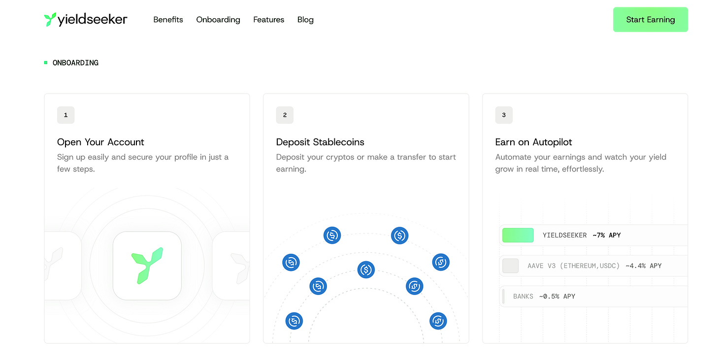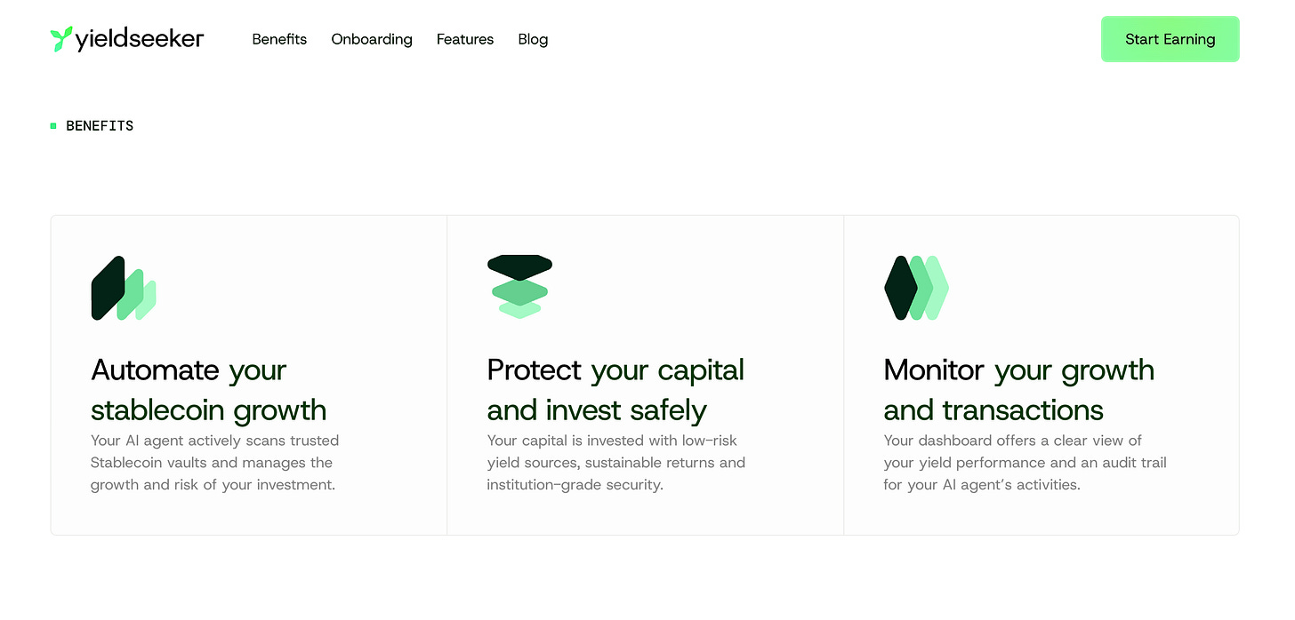 Yieldseeker is a platform that my cofounder Krishan711 and I started building last year that gives users their own AI Agent to maximise stablecoin yield generation for them on autopilot.
