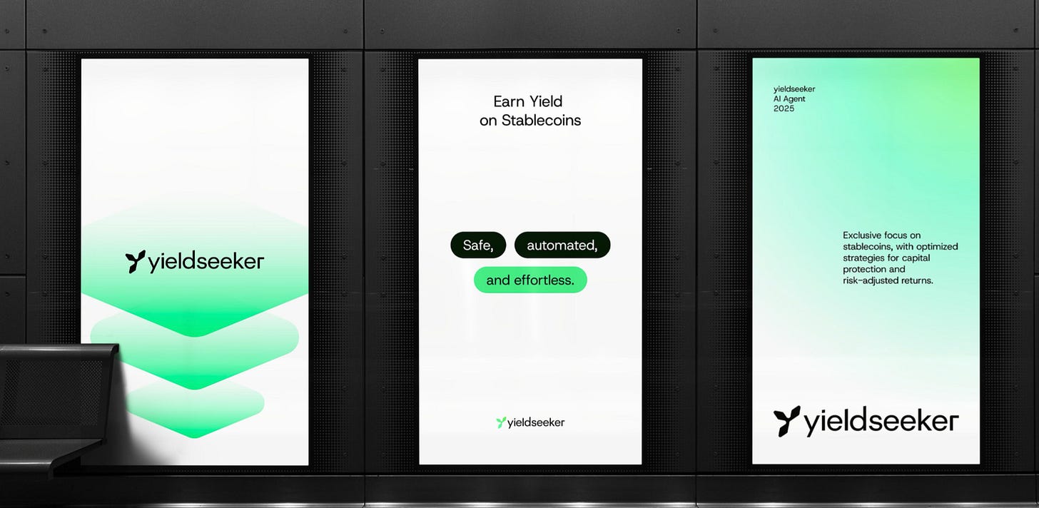 The original brand was a little degen, but yieldseeker is a safe app in crypto so the new brand matches this with a more pro DeFi-FinTech look about it.